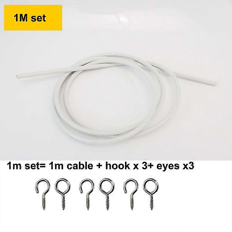 1M 2M 3m PVC Window Cord Cable Net Curtain track Wire White Windows wall hanging Line with HOOKS EYES For car Caravans Boats