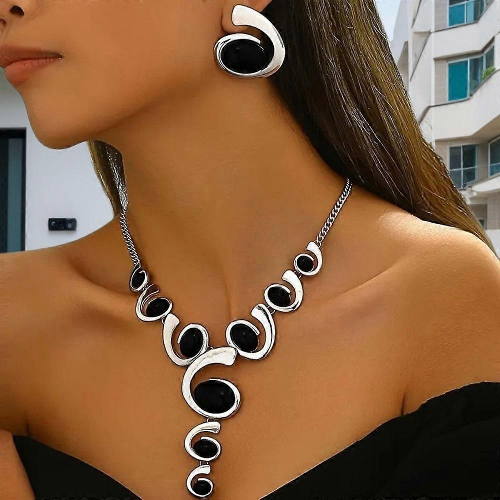 Elegant Alloy Earrings Set Adjustable Bohemian Style Spiral Snail Clavicle Chain Geometric Oval Charm Bridal Jewelry
