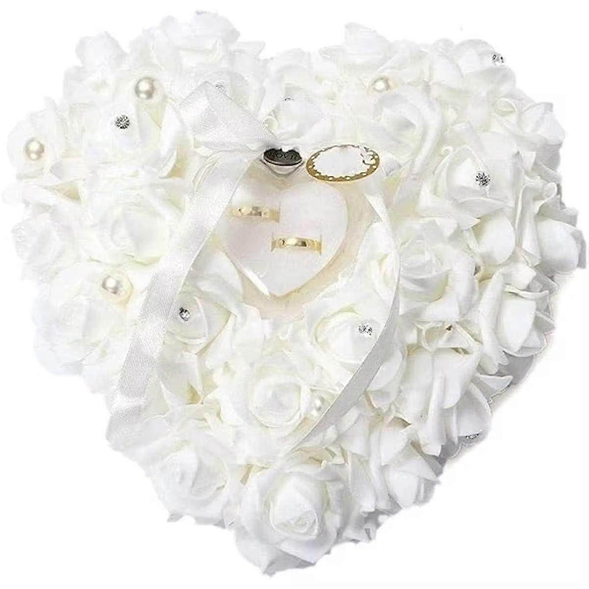 Romantic Wedding Ring Pillow Lvory Satin Crystal Ring Bearer Pillow Cushion Heart Shape For Engagement Propose Marriage Decor