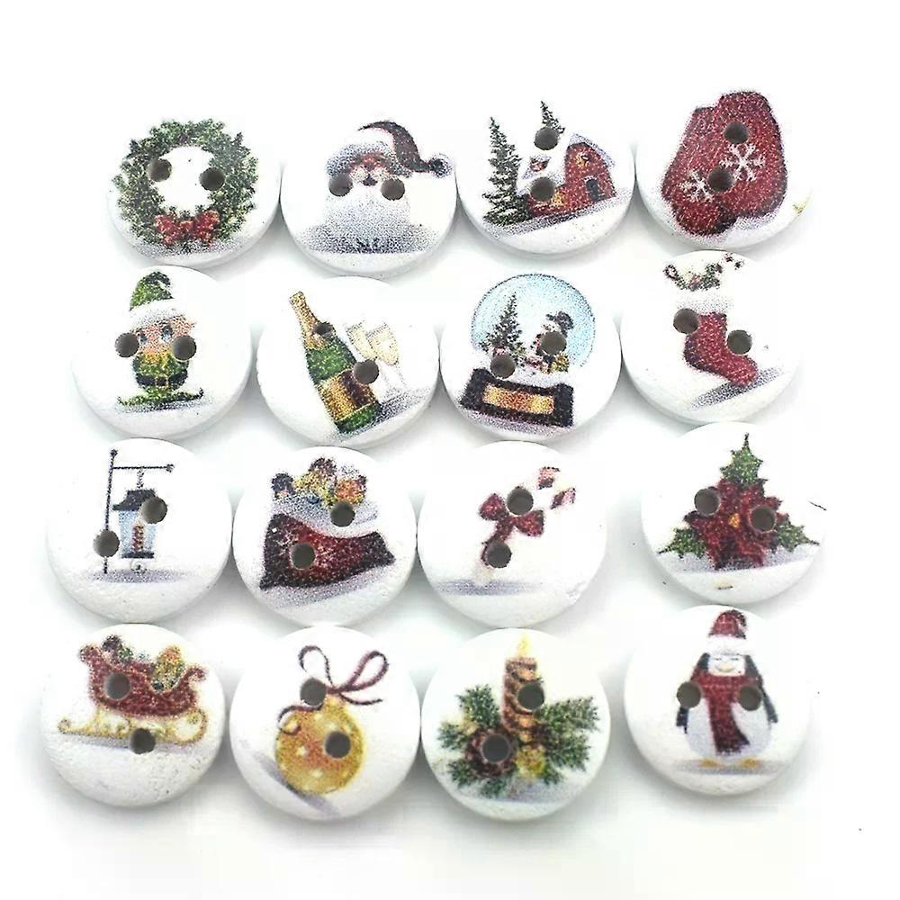 100PCS 15MM Wood Round Christmas Sewing Buttons for Kids Clothes Scrapbooking Decorative Botones Handicraft DIY Accessories