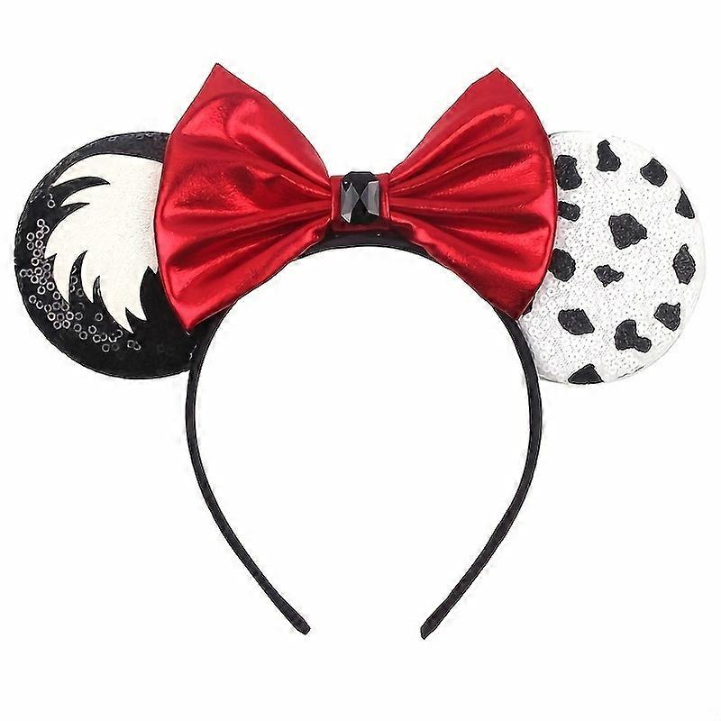 1pc Mickey Mouse Ear Headband Shiny Bow Black White Polka Dot Polyester Non-woven Fabric Party Friend Family Gift Hair Accessory