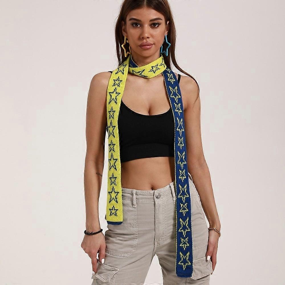 Vintage Star Knitted Scarf Neck Warmer Girl Accessories Narrow Long Scarf Y2K Style Imitation Cashmere Two Colors Muffler