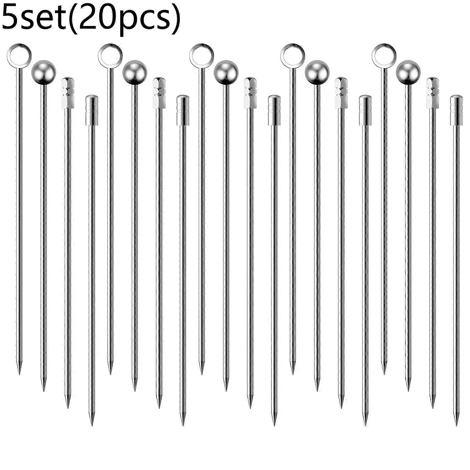 4/20Pcs Cocktail Picks Stick Stainless Steel Martini Picks Reusable Metal Cocktail Skewers Olives Appetizers Bloody Mary Brandie