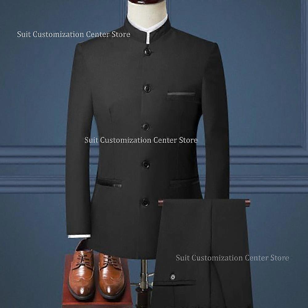 New Arrival Men's Suits Stand Collar Single Breasted Suit Formal Occasion Evening Party Male Clothing Slim 2 Piece Jacket Pants