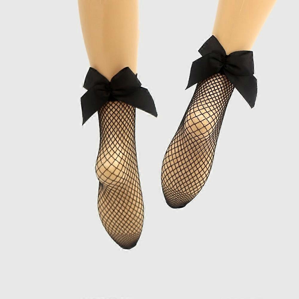 Kawaii Micro/Mid/Large Mesh with Bow Fishnet Socks Non-Slip Vintage Ankle Socks Short Length Breathable Sheer Socks Fashion Use