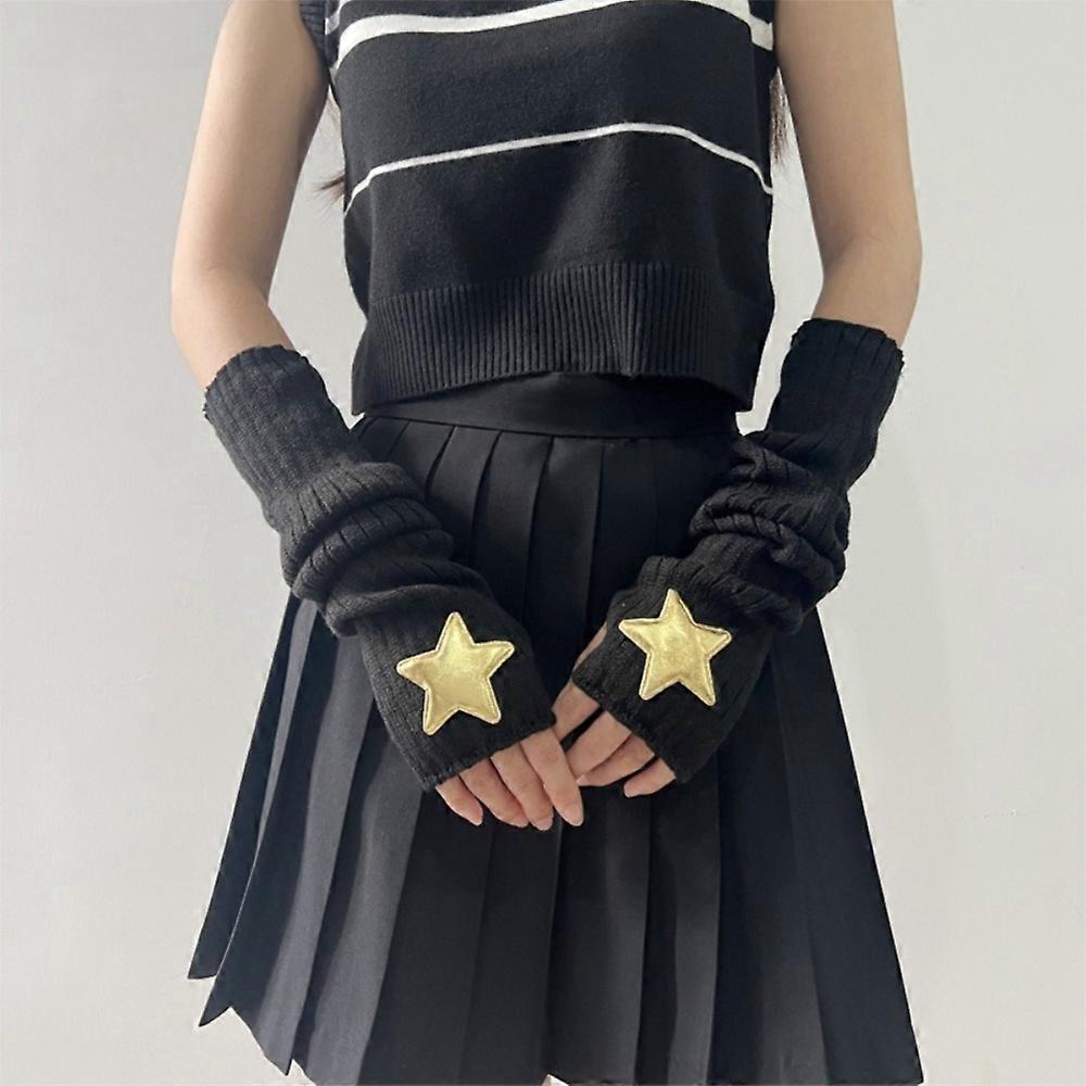 Fashion Long Arm Warmer Gloves Knitted with Pentagram Patch Warm Arm Sleeve Cold Proof Fingerless Gloves Autumn Winter