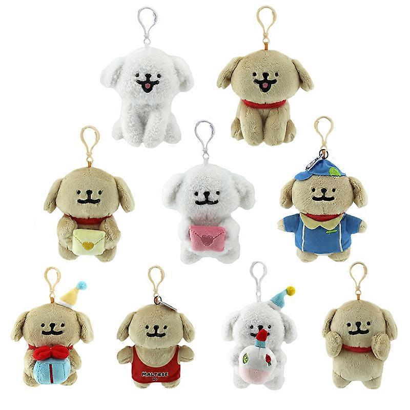 Cute Korean Maltese Dog Plush Keychain Plushies Soft Stuffed Animal Doll Pendant Cartoon Puppy Kids Boys Girls Birthday Gifts