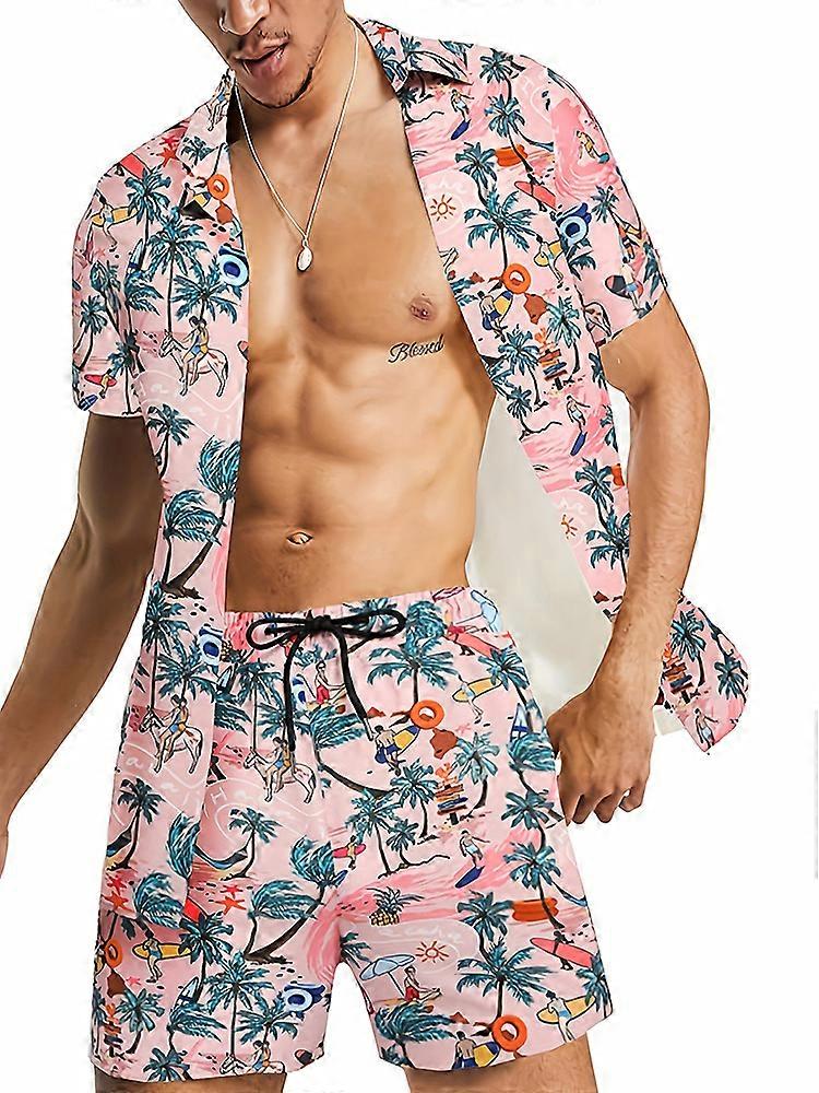 New Hawaiian Style Men's Short-Sleeved Shirt and Shorts Set Seaside Casual Short-Sleeved Shirt Summer Outdoor Shorts Men's Set