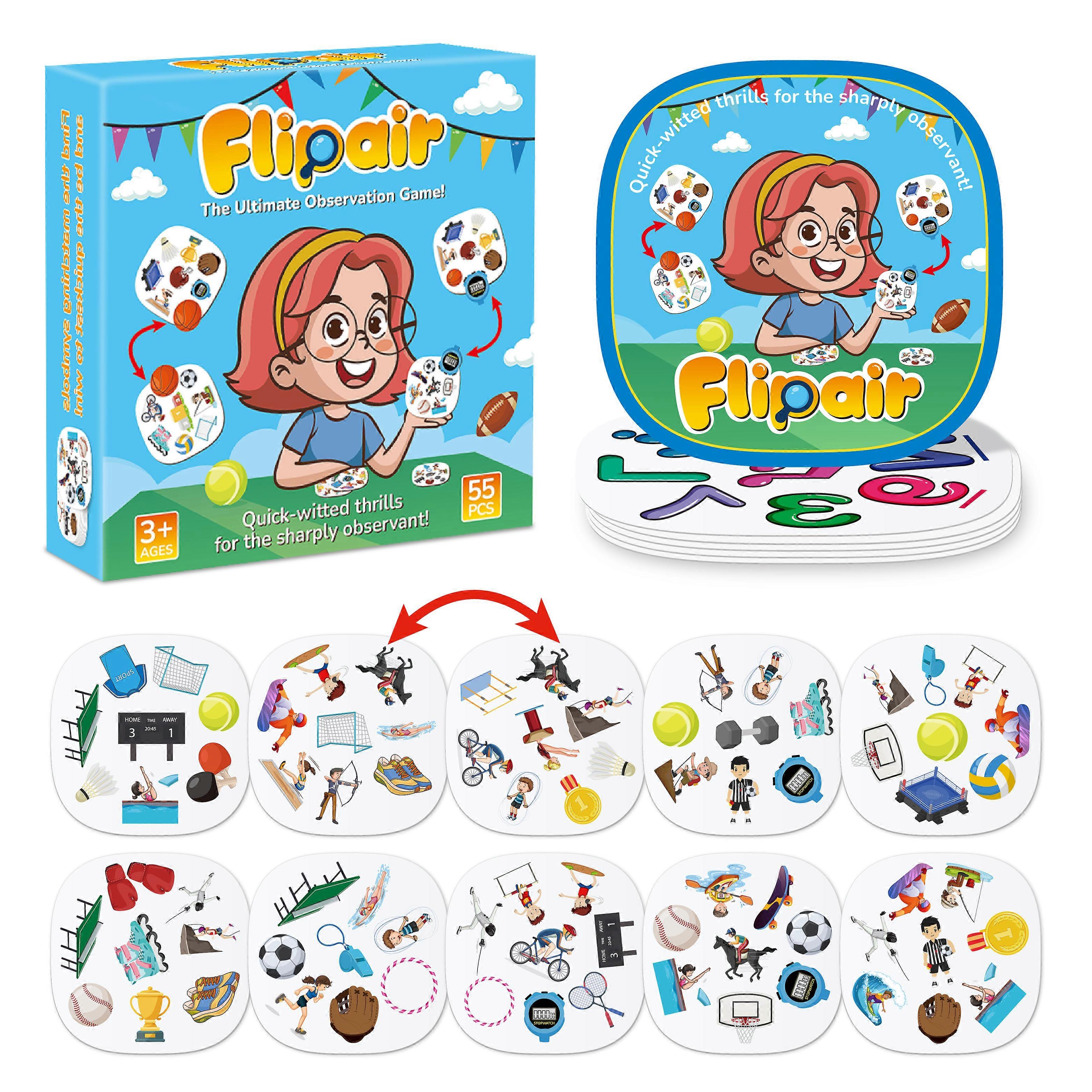 Flipair Sports Matching Card Game, Fun Visual Perception Game for Children Focus Training, Family, School, Parties & Travel