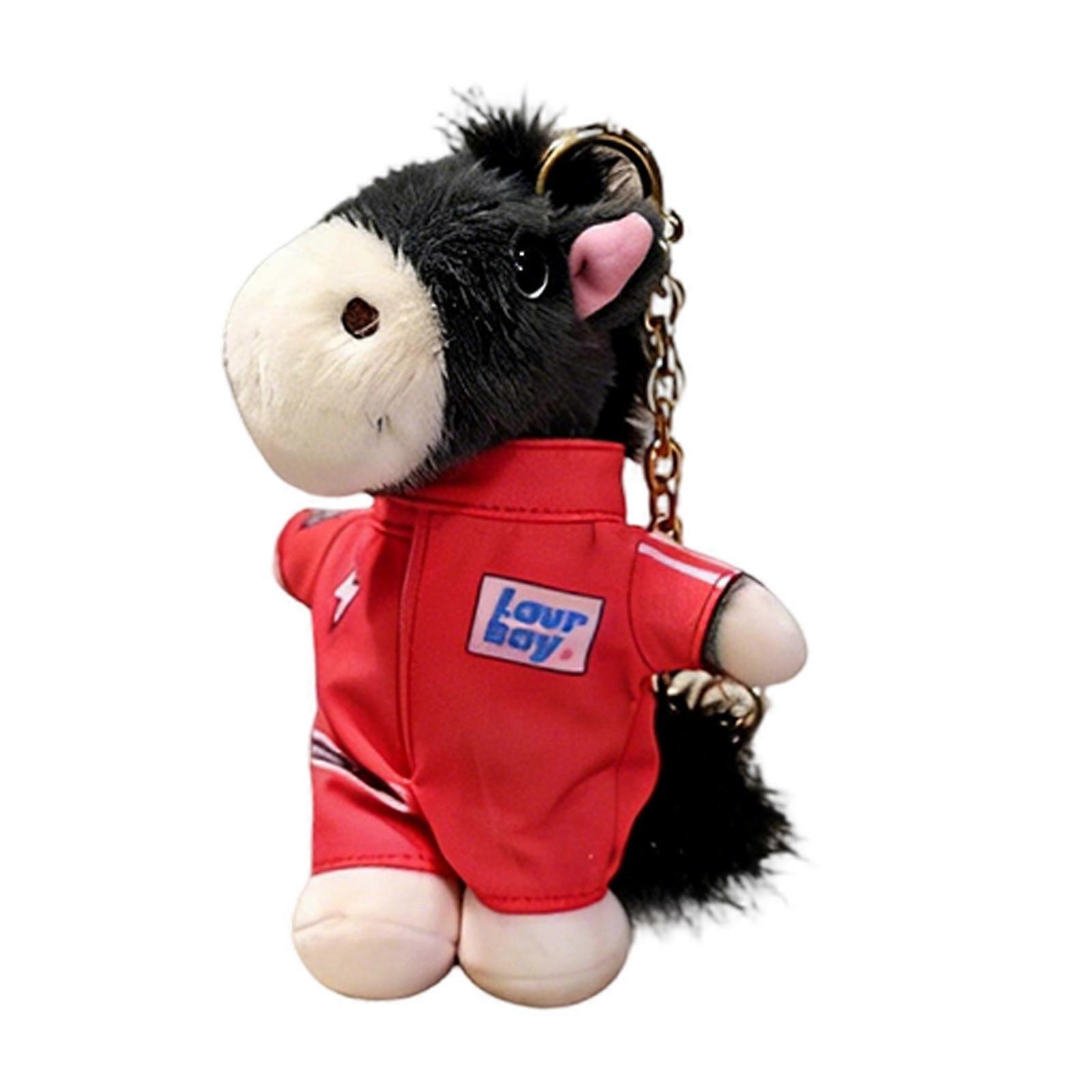 Trendy Biker Jacket Design Plush Horse Keychain for Youth Fashion Accessory Soft Material Lightweight and Ready to Use Motorcycle suit red
