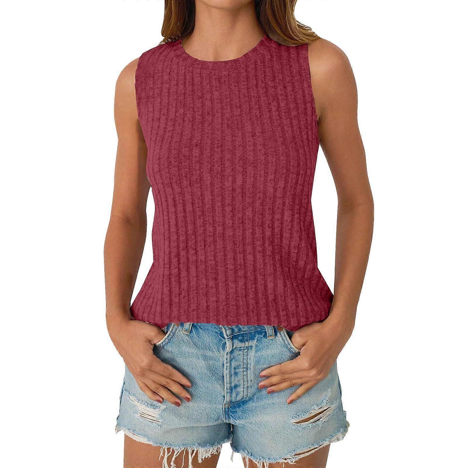 Women's sleeveless camisole shirt, spring V-neck loose casual wear, fashionable and trendy outfit Claret XL