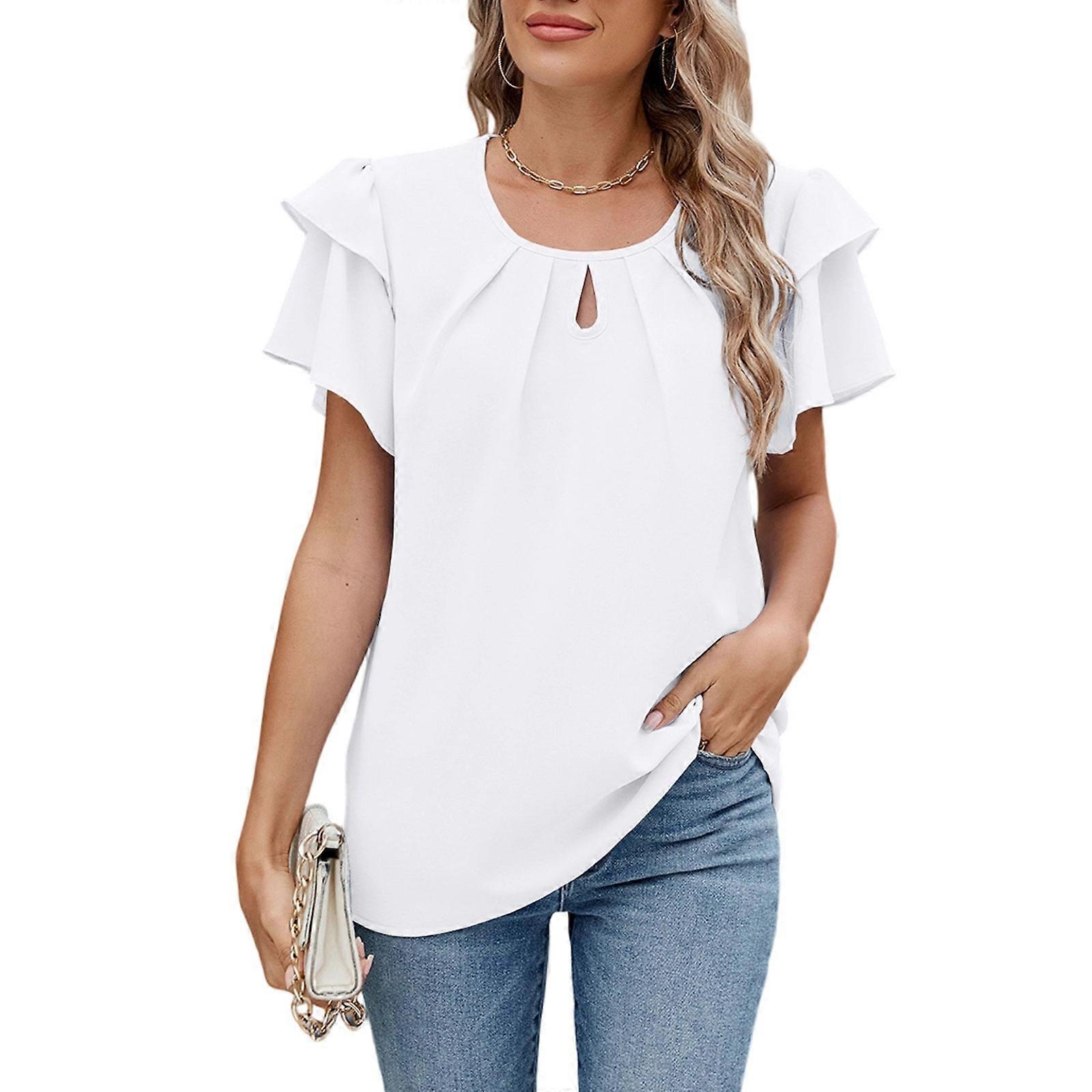 Womens Casual Business Work Blouses Short Ruffle Sleeve V Neck Shirts Trendy Outfits White XL