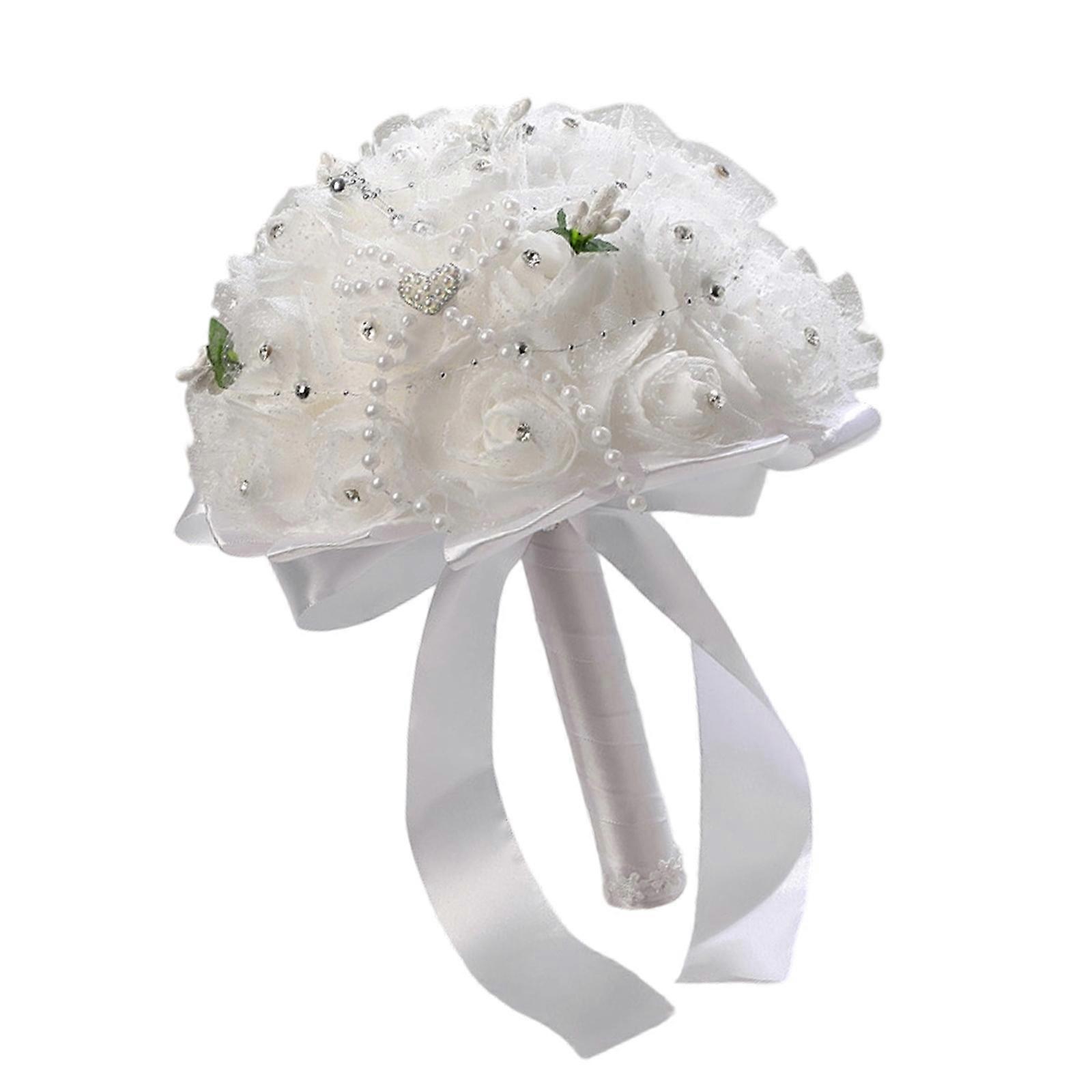 White Bridal Bouquet Flower Hand Bouquet Artificial Rose Bouquet Photo Props Bridal Bouquet for Wedding Party Prom White
