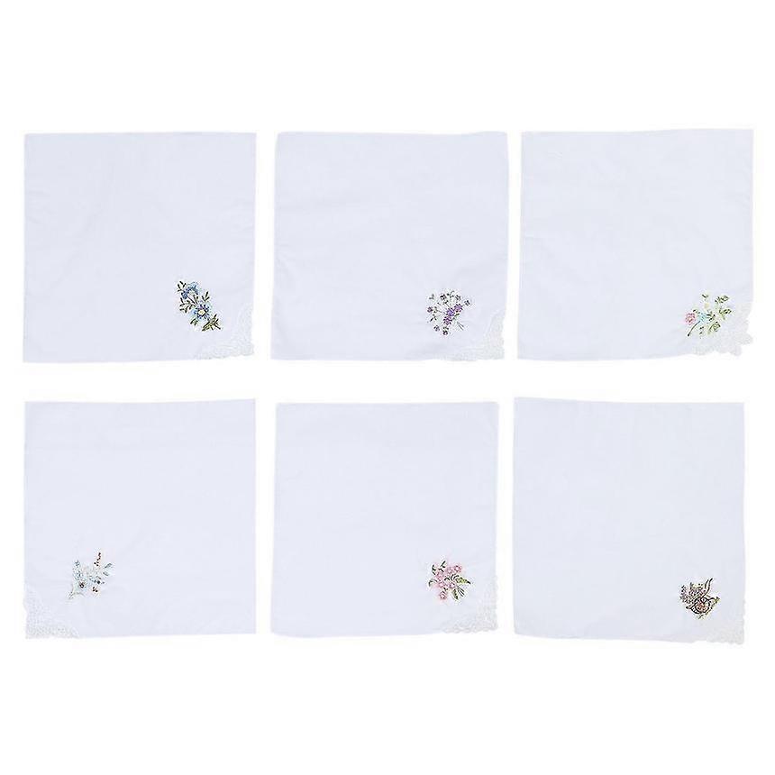 Cotton Handkerchiefs 6pcs Women Flower Embroidered