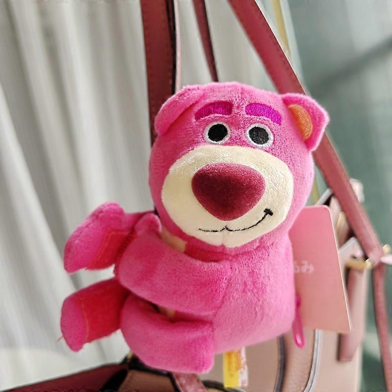 Disney Cute Hug Strawberry Bear Cartoon Elephant Plush Doll Electric Bike Bicycle Decoration Coin Pack Pendant Christmas Gift