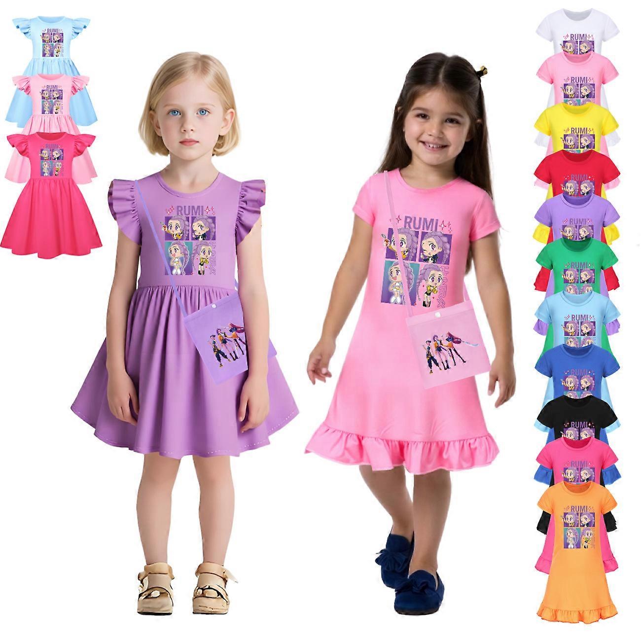 KPop Demon Hunters Summer Girls Casual Dress Kids Flying Sleeves Party Vestidos Toddler Girl's Elegant Wedding Dresses 4913