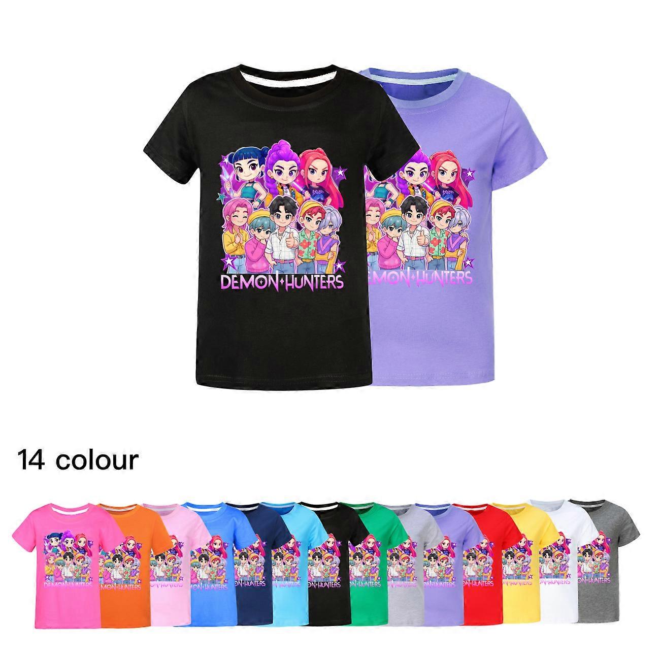 Summer Boys Girls T-shirt KPop Demon Hunters Huntrix Child T Shirt Cotton Tee Fashion Short Sleeve Loose Clothing Kids Gift