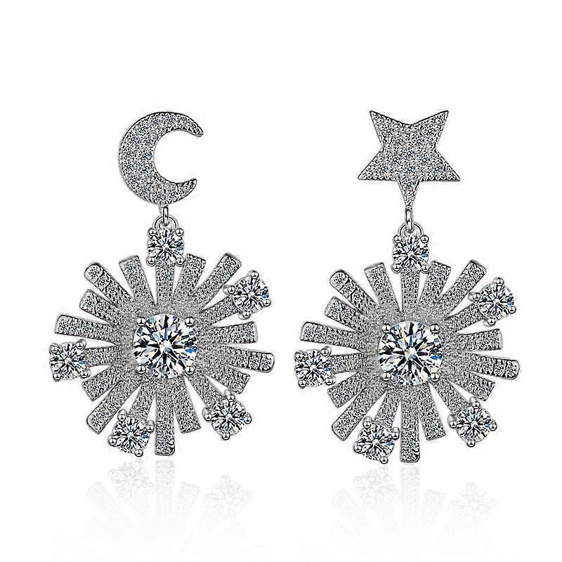 Stud Earrings, Elegant Simple Moon Star Double Layer Star Zircon Earrings for Women