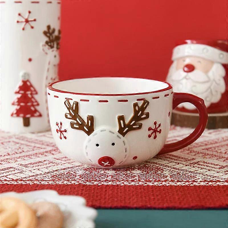 Christmas Creative Ceramic Mug Santa Claus Elk Embossed Design for Coffee Oatmeal Milk Home Water Cup Breakfast Gift Idea