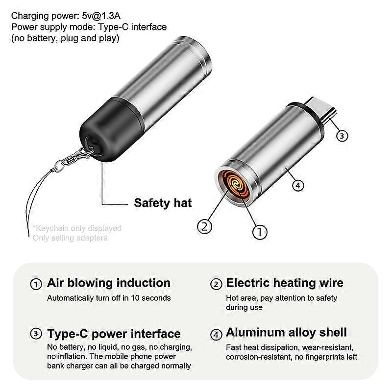 Type C Mini Blow-to-Ignite Auto Shut-Off For Air Travel Outdoor No Battery No Flame Portable Safety Adapter