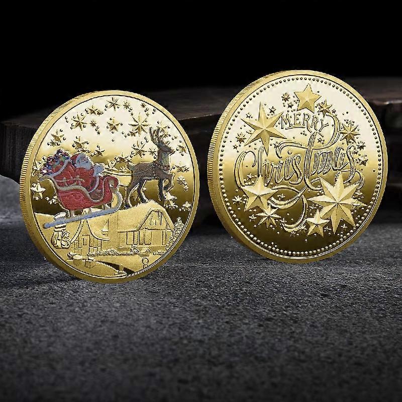 1PCS Merry Christmas Plated Gold Coin Santa Claus Colorful Star Snow Collectible Coins Christmas Souvenirs