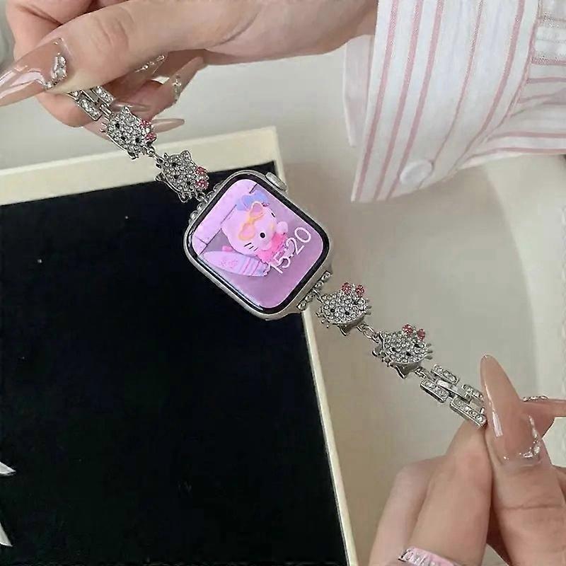 Kawaii Hello Kitty iwatch Watchband Sanrio Apple Watch Band Cartoon Diamond Metal Strap Y2k iwatch Accessories Cute Women Gift