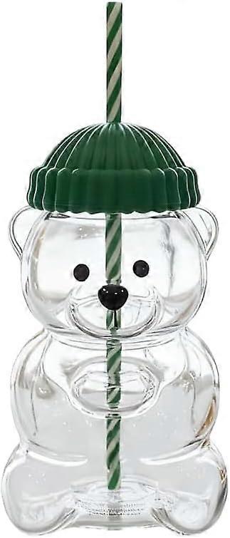 2025 New Bear Straw Cup, 20oz Cute Bear Glass Tumbler with Reusable Straw, Viral Animal Design for Smoothies, Boba & Iced Coffee