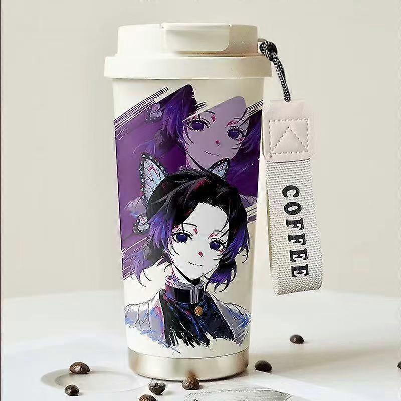 Anime Demon Slayer Kochou Shinobu Cup Cartoon Cool Personality Stainless Steel Straw Mug Portable Coffee Insulated Car Mug Gift
