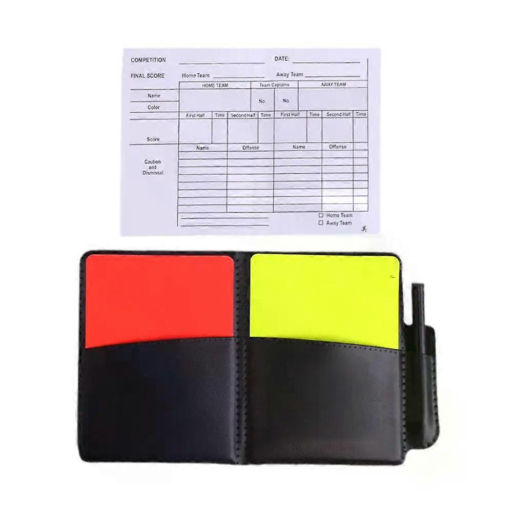 Soccer Referee Record Book Fluorescent Red Yellow Warn Cards Recording Equipment And Leather Football With Pencil Wallet Paper