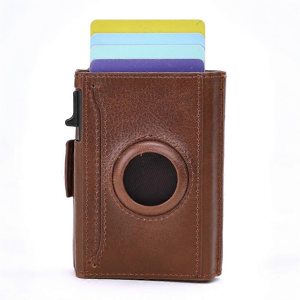 New Slim Pop Up Wallet for Men Minimalist Credit Card Holder with Leather Airtag Slots Men's Trifold RFID Blocking Metal Wallets