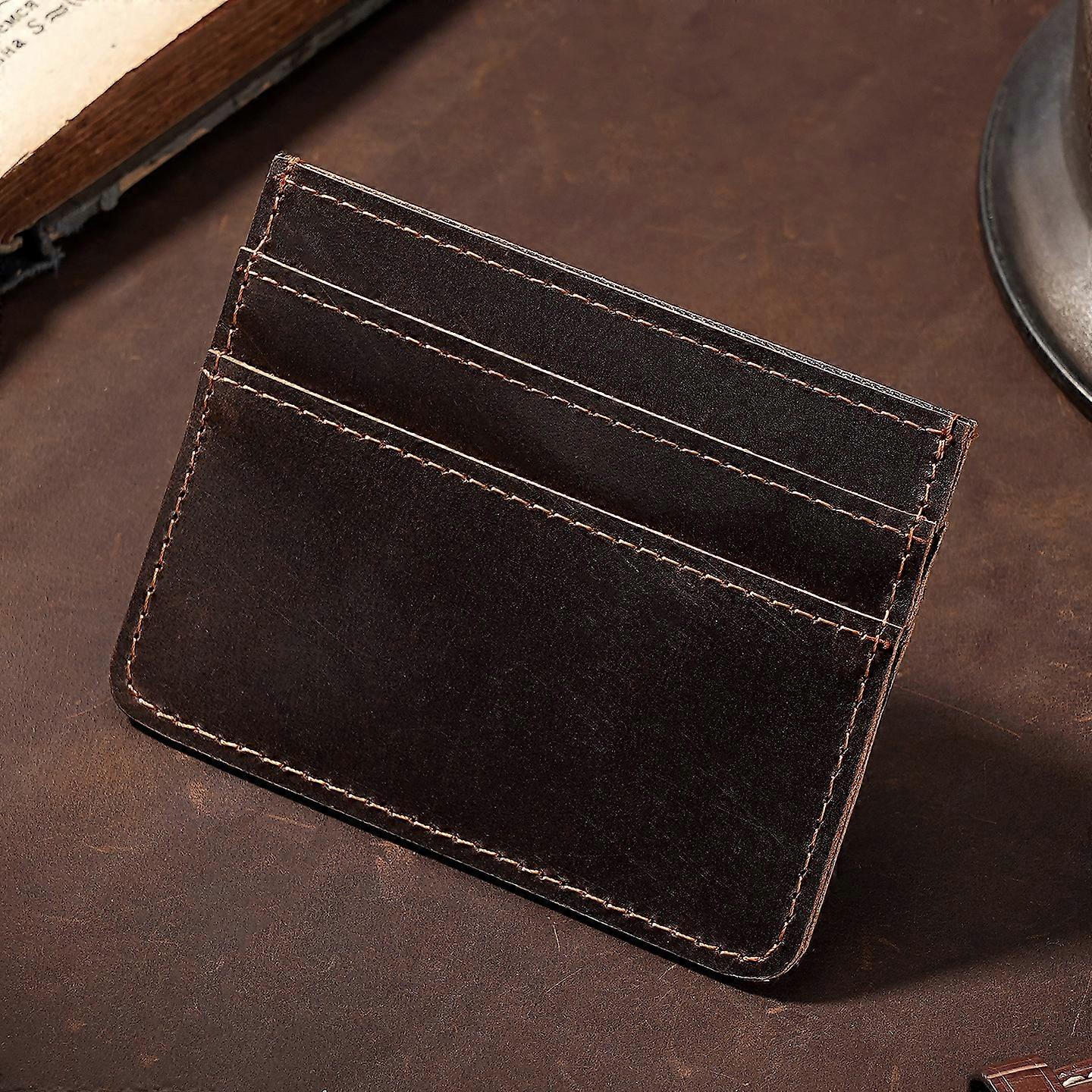 Portable Men's and Women's Slim Card Holder Genuine Leather Card Case for Daily Commute & Cash Storage Credit Cards Protector