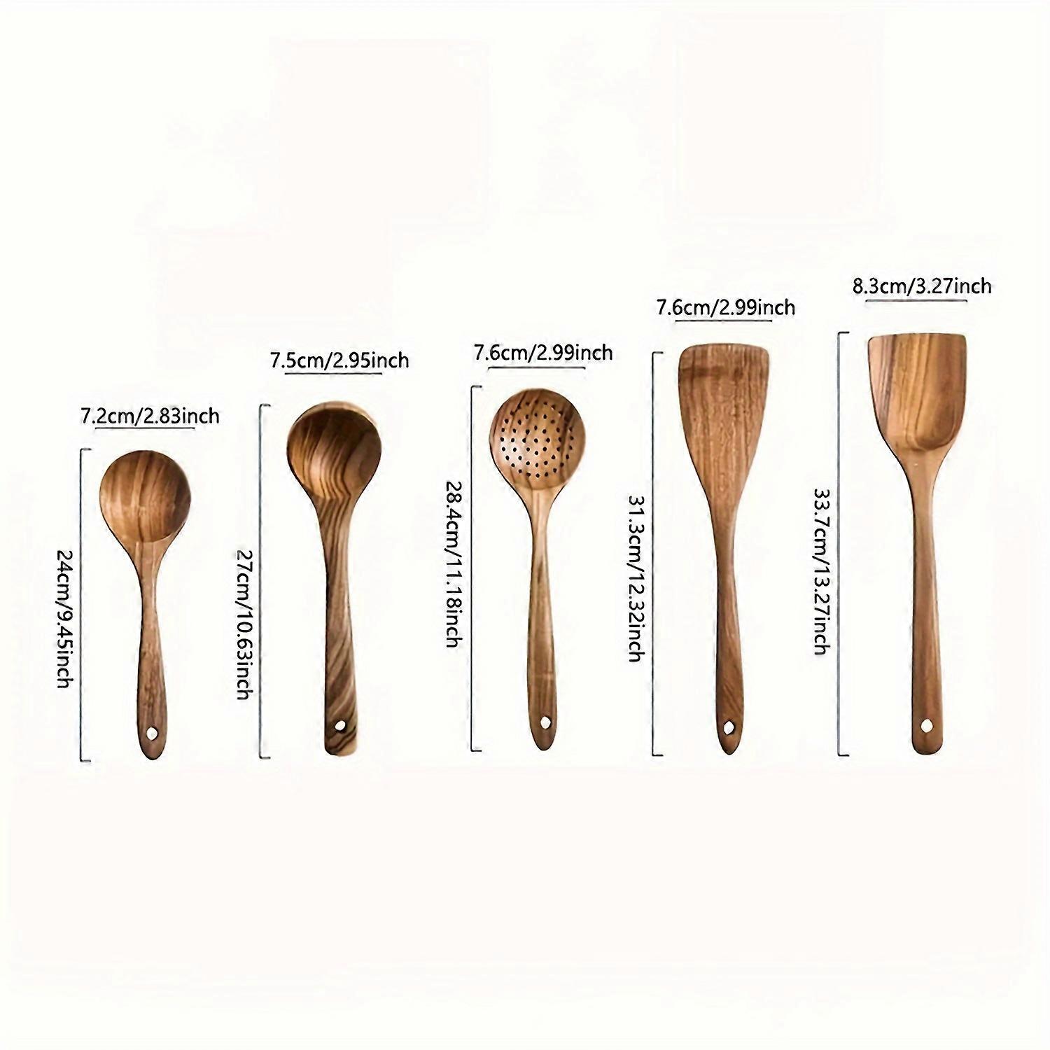 5pcs Wooden Kitchen Utensils Set, Wooden Spoons Natural Spurtle Set for Non-stick Pan, Kitchen Ladle and Wok Spatulas