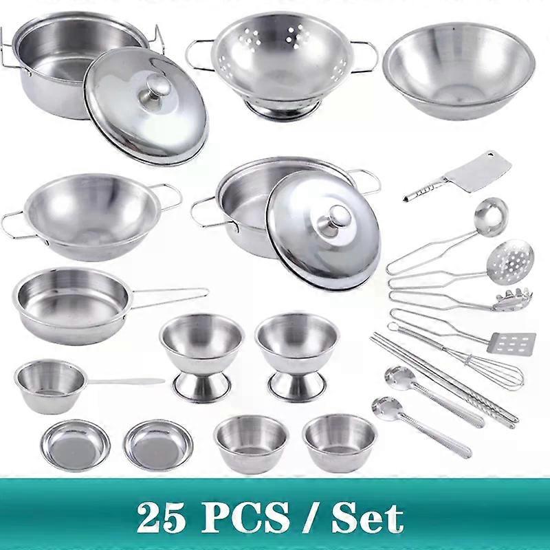 Set For Kids Girl Stainless Steel MINI Kitchen Utensils Toys Can Hold Food Cooking Kitchen Education Pretend Play