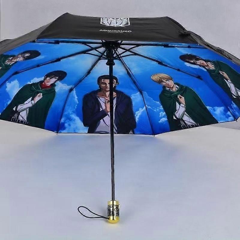 Attack On Titan Fully Automatic Umbrella Eren Yeager Levi Ackerman Armin Arlert Anime Windproof And Uv Resistant Umbrella Gift