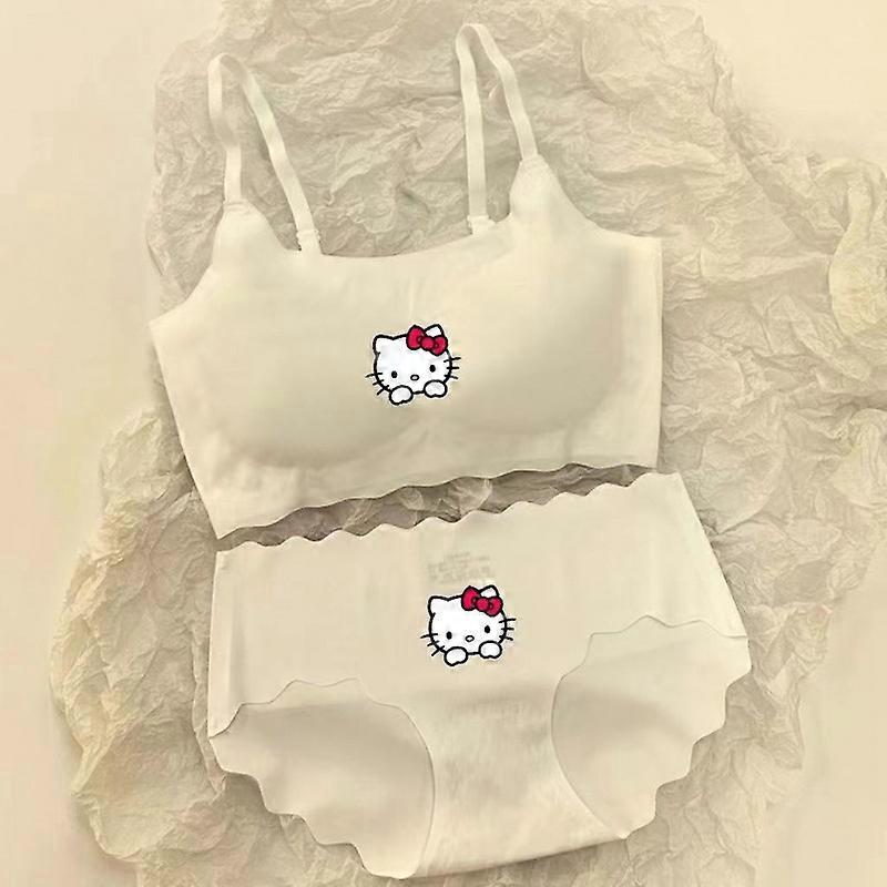 Kawaii Hello Kitty Woman Underwear Anime Sanrio Ice Silk Bra Girl Cartoon Sports Underwears Soft Breathable Camisoles Panty Set