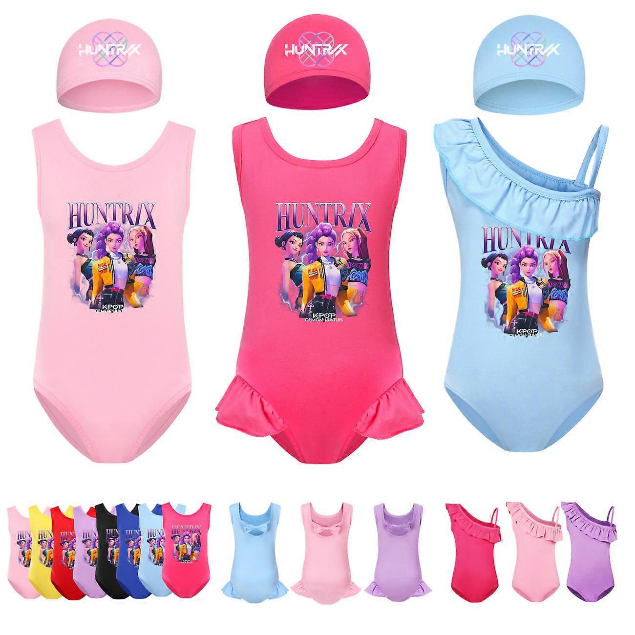 KPop Demon Hunters Kids Toddler Girls Swimwear 2pcs Set One Piece BeachWear Swimming Suit with Cap Child Cartoon Swimsuit 4992