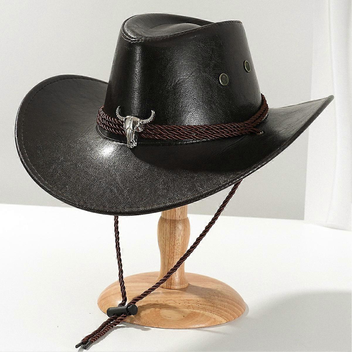New Vintage Faux Leather Western Cowboy Hat For Men Women Outdoor Gentleman Cowgirl Jazz Hats Sombrero Hombre