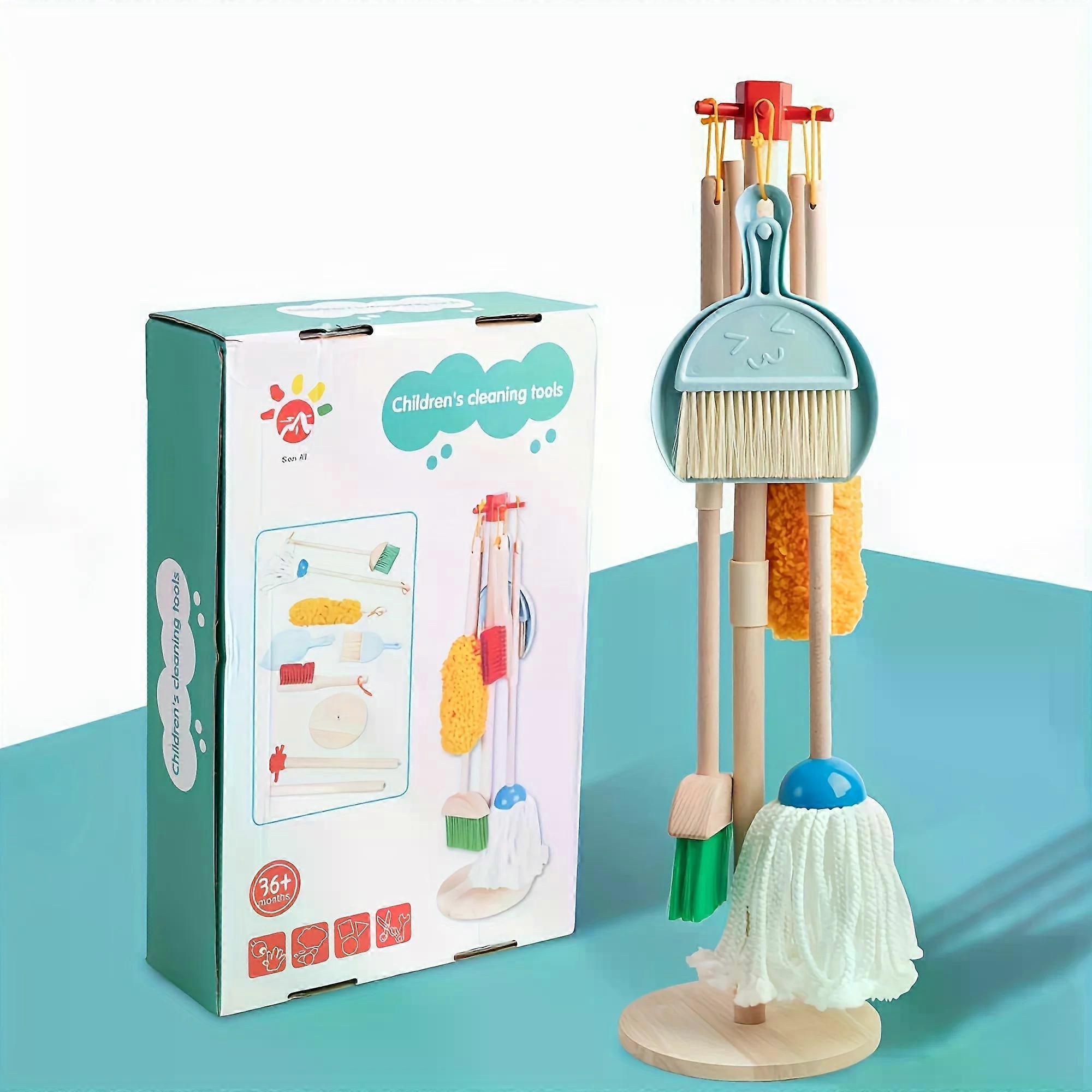 Wooden Kids Cleaning Set For Toddlers,8 Pieces Cleaning Toys With Kids Broom And Mop Set Pretend Play Toy Gift