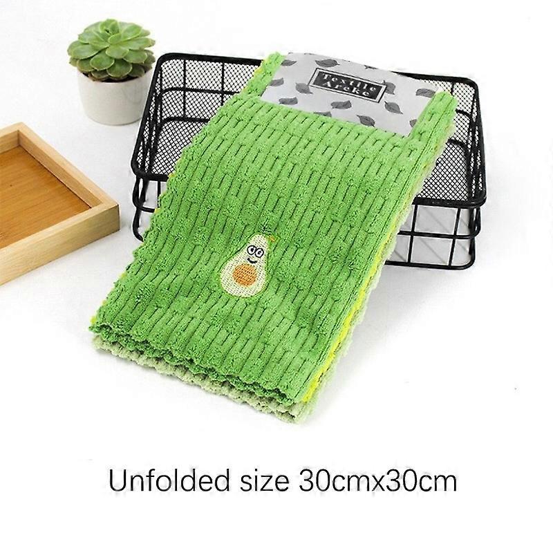 4-pack Cartoon Avocado Pattern Thickened Polyester Rag Kitchen Dish Cloth Cleaning Cloth Embroidered Towel Absorbent Square Towe