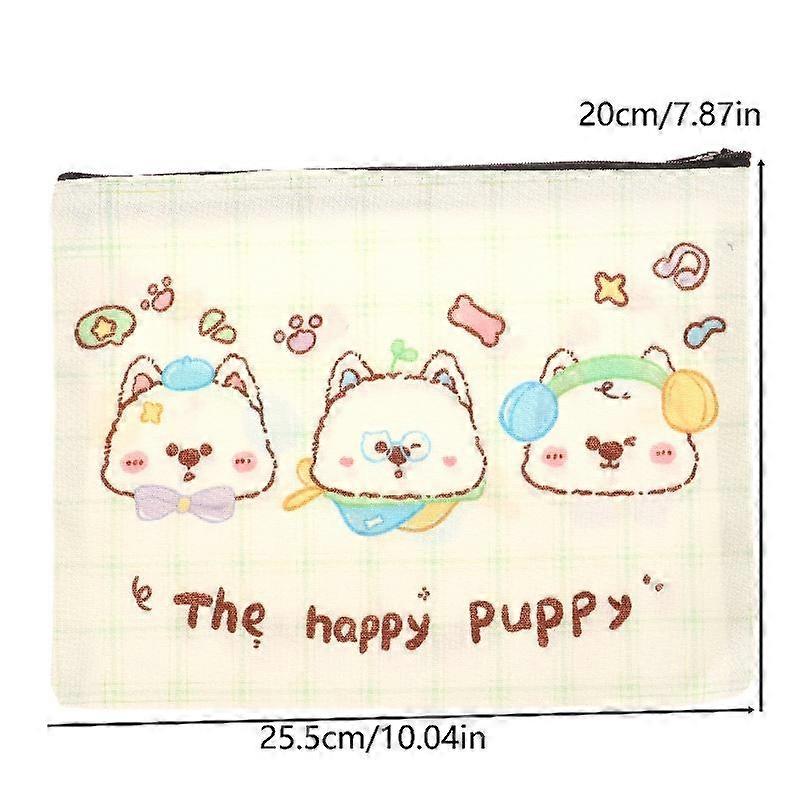 Happy Puppy Cosmetic Bag Lovely Cartoon Little Dog Makeup Storage Bag Travel Toiletry Bag Large Capacity Canvas Storage Pouch