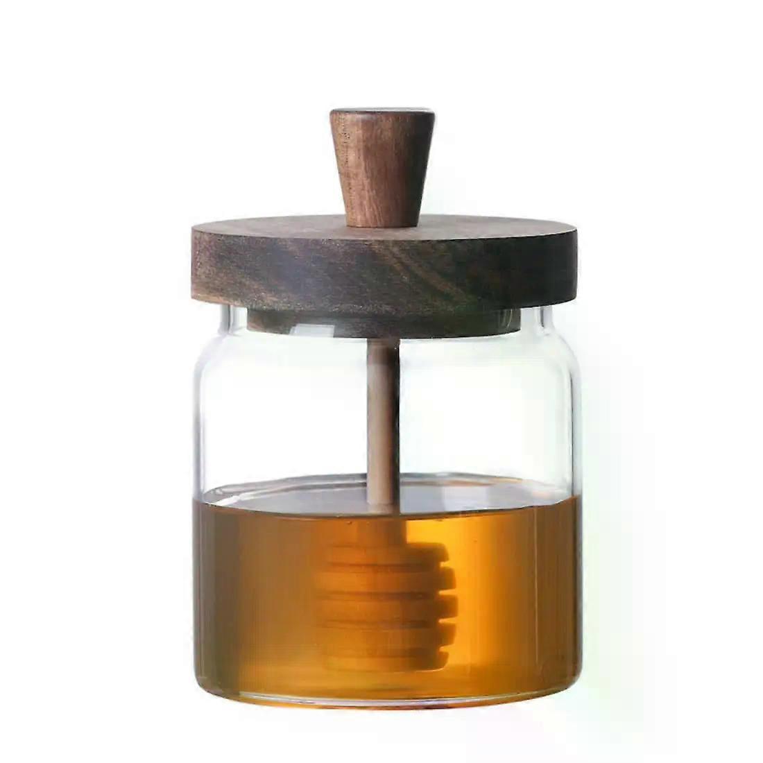 Honey container Honey pot sealed glass honey jar with dip stick and wooden lid Mason jar for household kitchen