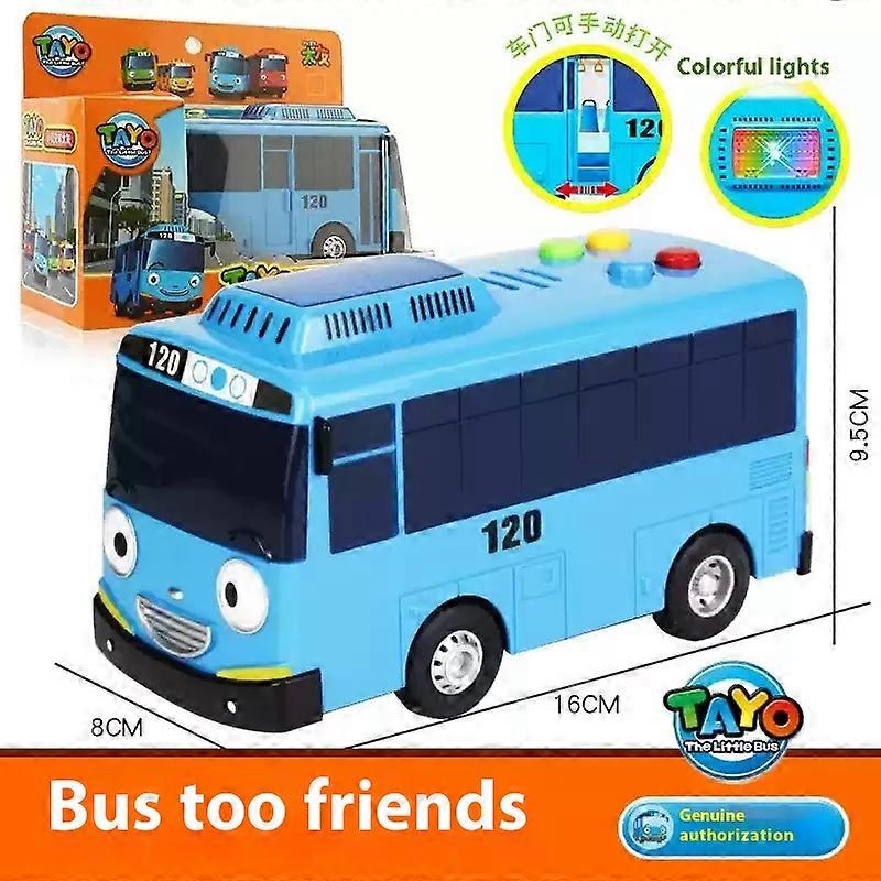 Korean Tayo the Little Bus Original 16cm Cartoon Toy Car, Children's Pull-Back & Friction Car, Light-Up 4-Piece Set, Kids Gift