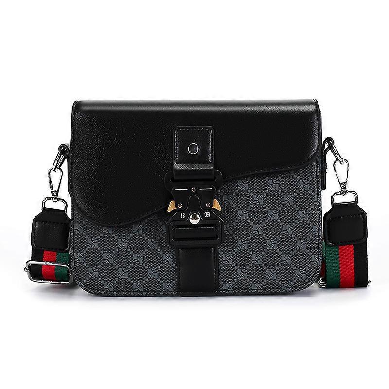 New Style Jacquard Canvas Patchwork Horse Saddle Messenger Bag Vintage Black Particle Surface Cow Leather Single Shoulder Bag
