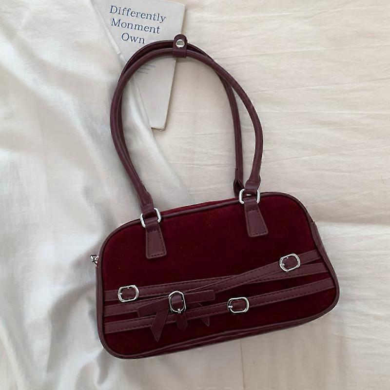 2025 Autumn/Winter New Style Korean Versatile Bowling Underarm Bag Suede Retro Shoulder Bag Square Handbag Korean Style Simple