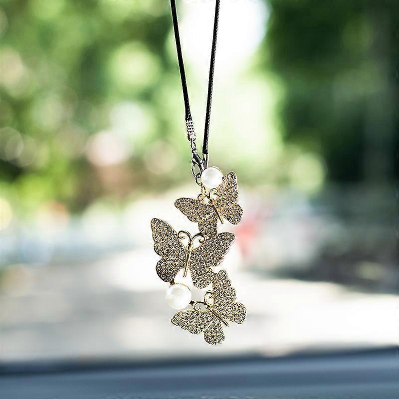 Creative Alloy Pearl Butterfly Car Rearview Mirror Pendant Car Pendant Car Interior Simple Decoration