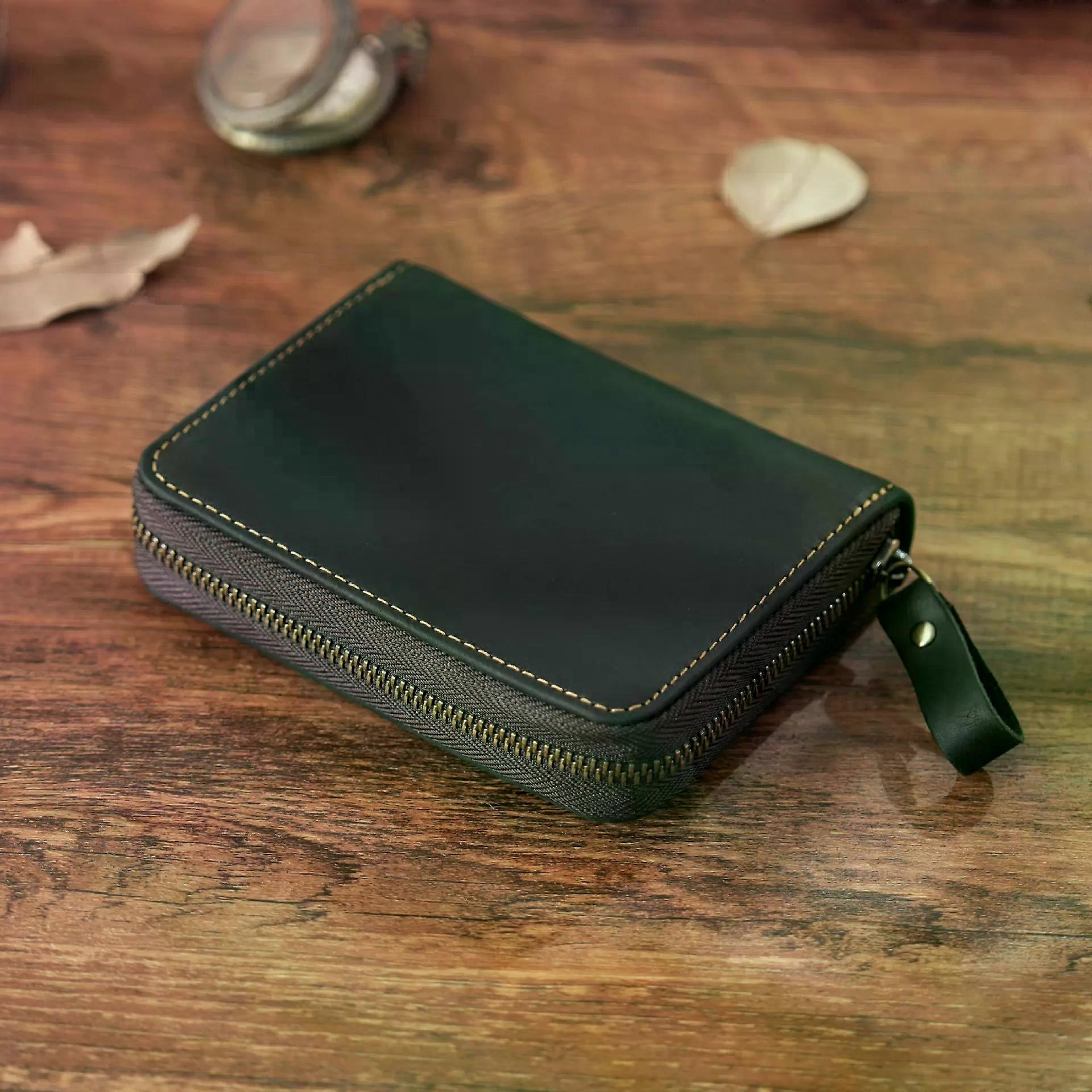 Large Capacity RFID Shielded Men's Short Wallet Multi Card Slot Organ Credit Card Bag Retro Genuine Leather Business Card Holder