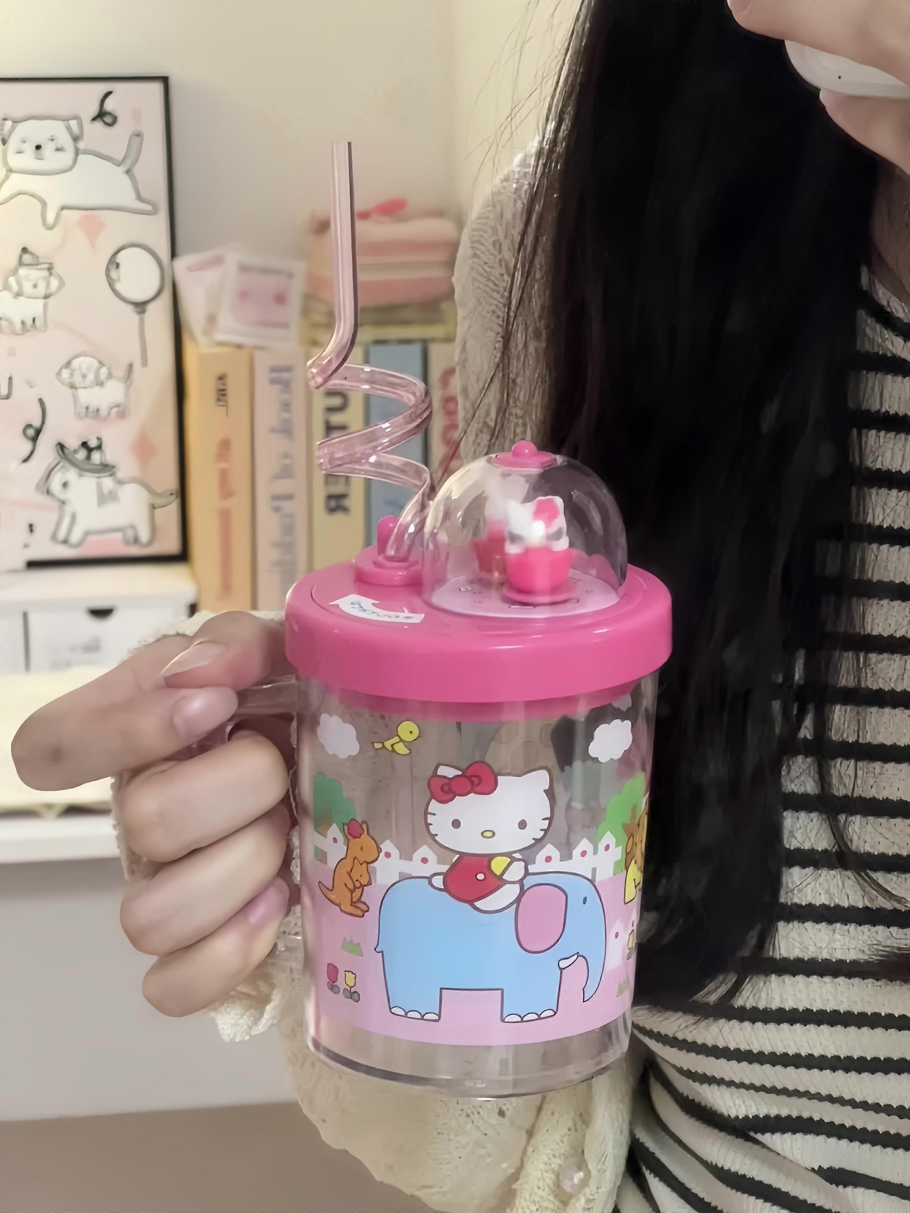 Hello Kitty Water Cup Sanrio Anime Doll Rotating Creative Water Cup Cute Cartoon Large Capacity Glass Straw Cups Children Gifts