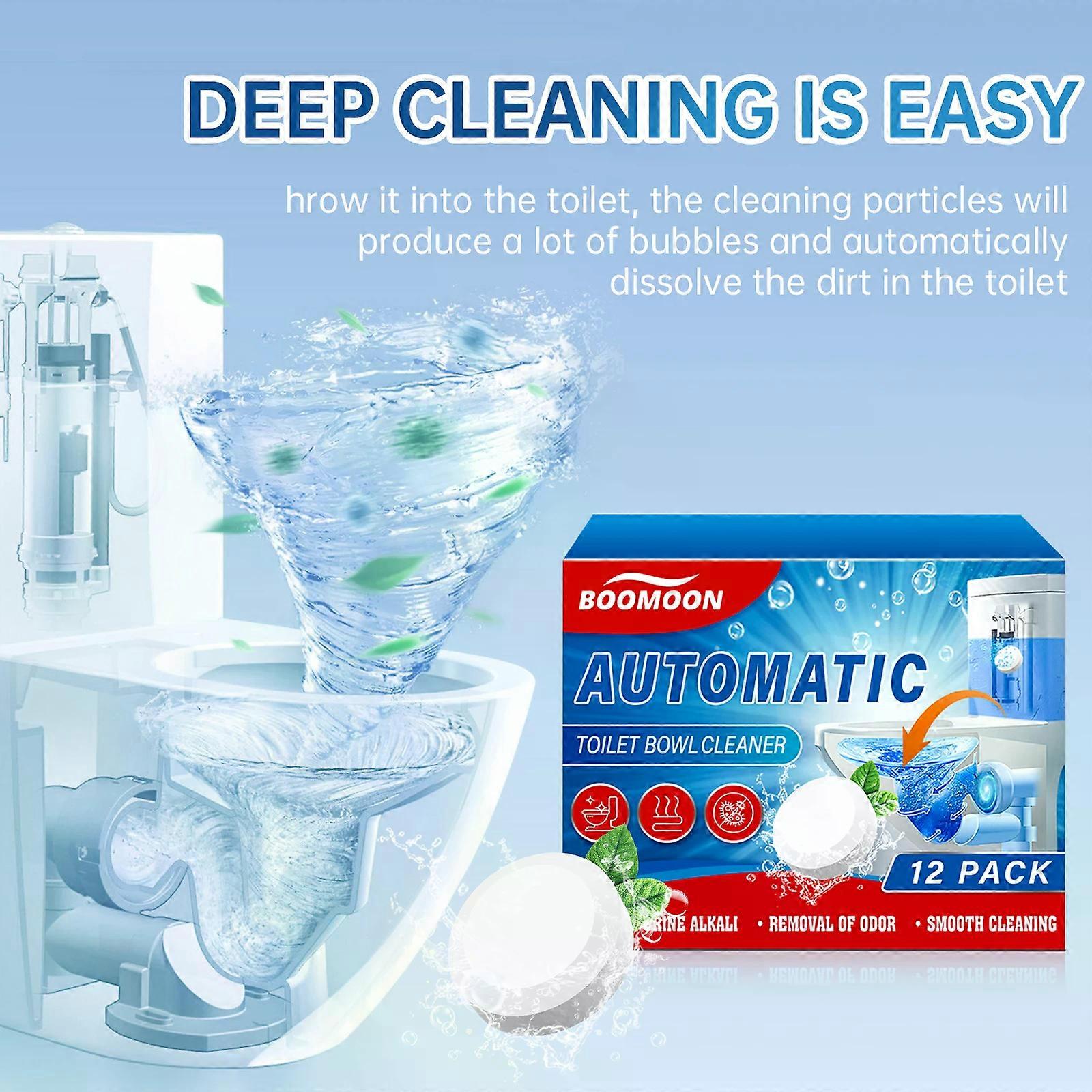 Automatic Toilet Bowl Cleaner Tablets 12 Pcs Fast Bleaching Remove Urine Scale Eliminate Odor Deep Cleaning Effervescent