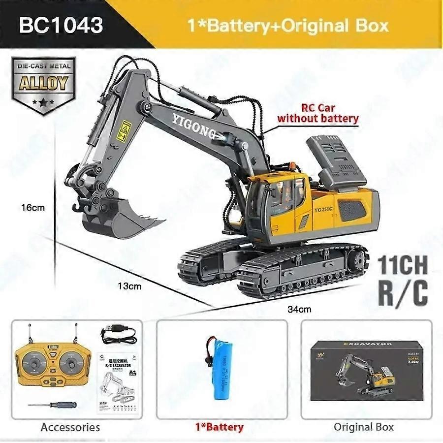 Remote Control Excavator Toy for Kids -2.4Ghz RC Construction Vehicle Truck Toy with Alloy Metal Cap, Light&Sound