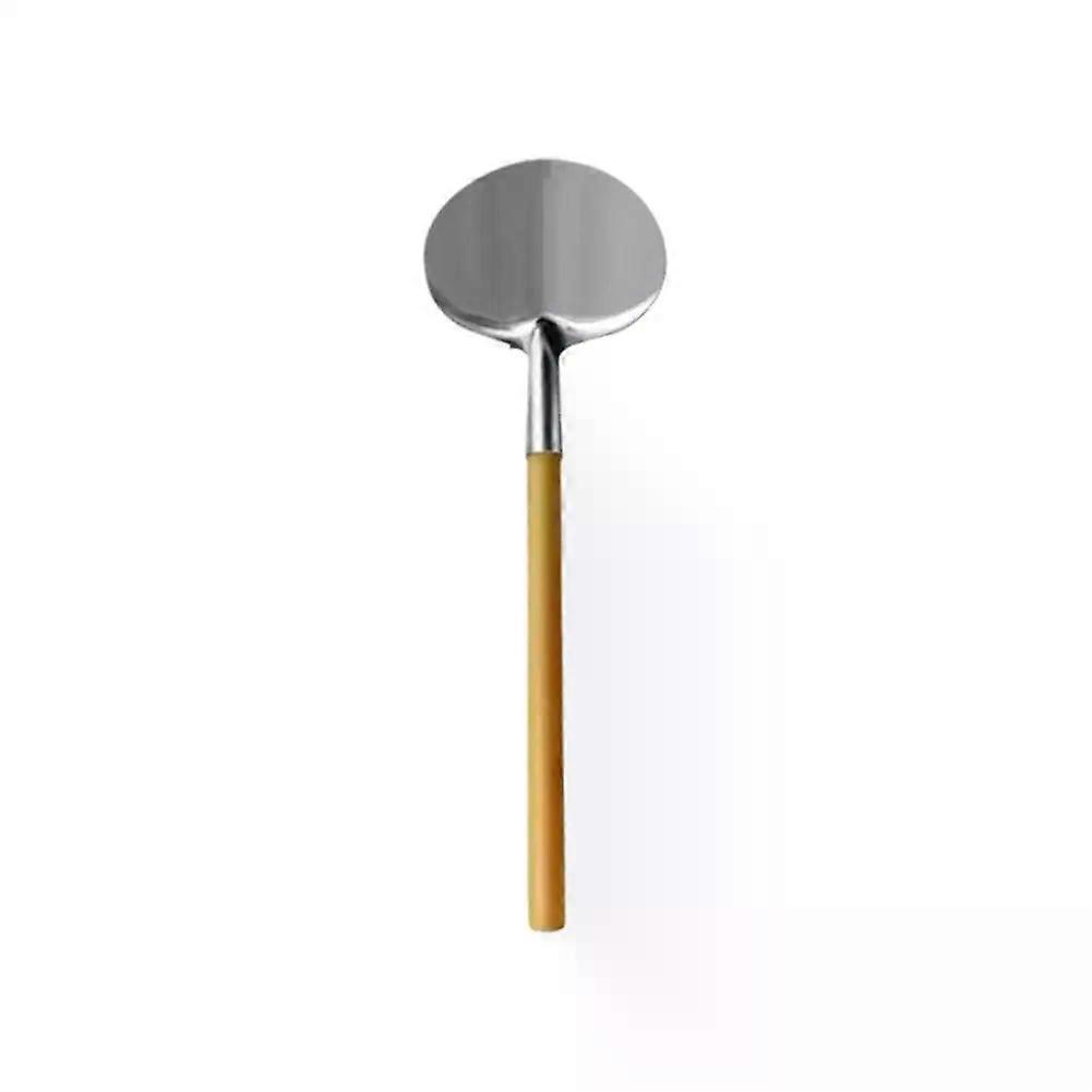 Country Home manche en bois en acier inoxydable bouche ronde spatule ethnique originale antiadh��sive Tujia poign��e groupe Wok en bois A2W2